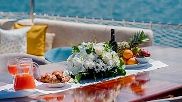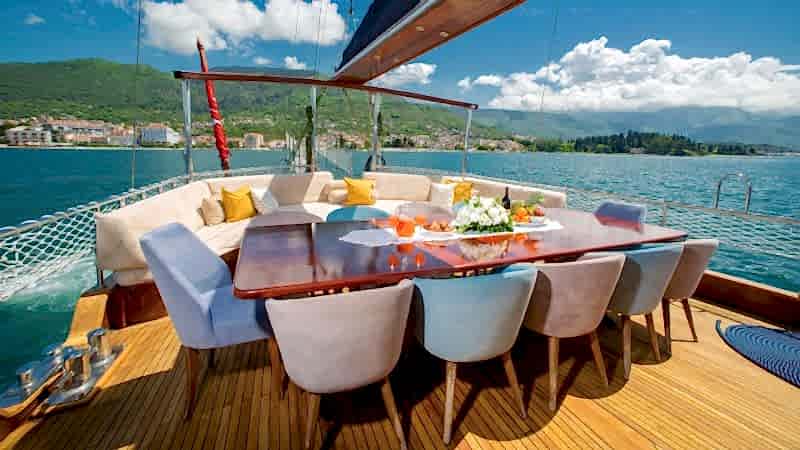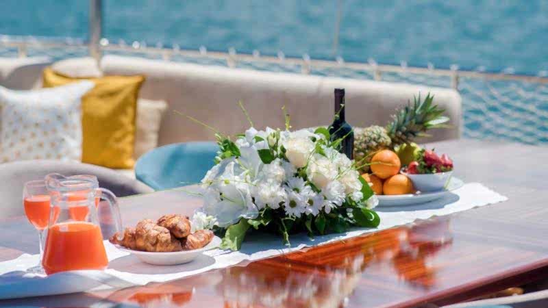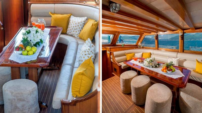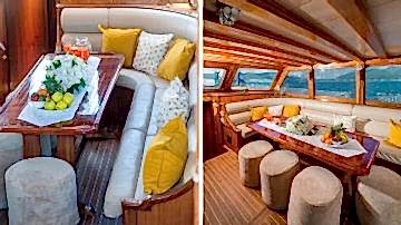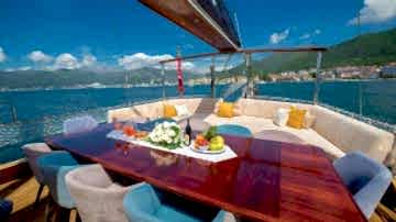 2006 sezonunda suya indirilen Adatepe 4 teknesi, ekonomik tekne kiralama tercih eden misafirlerimiz için kaliteli hizmet sunmaktadır. Teknemizde toplamda 6 adet çift kişilik kabin bulunmakta olup, bunlar 1 adet master kabin ve 5 adet double kabinden oluşmaktadır. Adatepe 4 guletinde toplam maksimum 12 kişiye kadar mavi yolculuk hizmeti alınabilmektedir. 25 metre uzunluğa sahip olan Adatepe 4 yatı, ön ve arka güvertelerinde geniş oturma minderlerine sahiptir. Uygun hava şartlarında yelken seyri de yapabilen teknemiz, tecrübeli personeli ile sizlerin güzel bir tatil geçirmesine olanak sunmaktadır. Teknemiz Göcek limanına bağlı olup, Göcek yat kiralama rotaları için uygun bir alternatiftir.