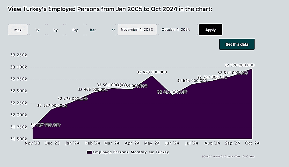 Ekim 2024'te Türkiye'deki çalışan kişi sayısı, bir önceki aya göre artış göstererek 32.970.000'e ulaştı ve bu, yat üretimi gibi sektörleri destekleyen güçlü bir işgücü piyasasına işaret ediyor.